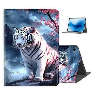 FXIANGWL for Samsung Galaxy Tab A9 Plus Tablet Case, Lightweight PU Leather Adjustable Stand, Auto Wake-Sleep, Protective Smart Cover for Galaxy Tab A9 Plus, White Tiger