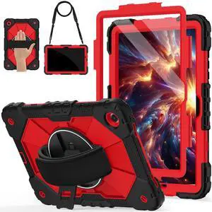 Nitupai Case for Galaxy Tab A11+ Plus 2025/ A9+ 2023 11 Inch, Rugged Samsung Tab A11 Plus Case Galaxy A9+ Tablet Cover with 360 Rotating Hand Strap Stand Shoulder Strap Screen Protector, Black Red