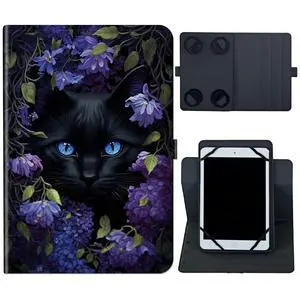 6 7 Inch Tablet Case,Universal Case for 6-7 Inch Tablet eReader,7" Kindle Series e-Reader Tablet Stand Folio Shell Cover with 360 Degree Rotatable Kickstand Multiple Viewing,Black Cat Flower