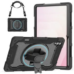 Bkinew Case for Samsung Galaxy Tab S11 Ultra 14.6" 2025 Tablet with Pencil Holder 360 Rotating Kickstand Hand Shoulder Strap Shockproof Rugged Protection Cover, Black