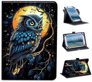 FXIANGWL for Universal 9-10.5 Inch Android Tablet Case, 360 Degree Rotating Multi-Angle Stand PU Leather Universal Case Cover for All 9-10.5 Inch Tablet, Blue Wierd Owl