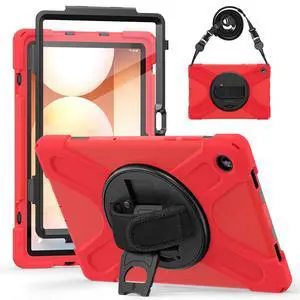ROSROME for Galaxy Tab A11+ Plus / A9+ Case 11 Inch, Rugged Case for Samsung Galaxy A9 Plus/A11+ Tablet with Screen Protector 360 Rotating Stand Shoulder Strap Pen Holder 2025/2023 Model, Red/Black