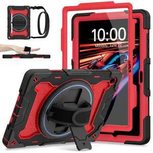 Lunivop Case Compatible with Samsung Galaxy Tab A11 Plus Case 11 Inch 360 Rotating Stand/Hand Strap with Built-in Screen Protector Heavy Duty Tablet Cover for Samsung Tab A11+ Plus Red