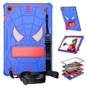 Dteck for Galaxy Tab A9+ 11" (SM-X210) Shockproof Case with Kickstand/Shoulder Strap, Cute Cool Spider 3 Layers Design, Drop Proof Impact Resistant Protective Kid-Friendly Hard Tablet Cover, Blue/Red
