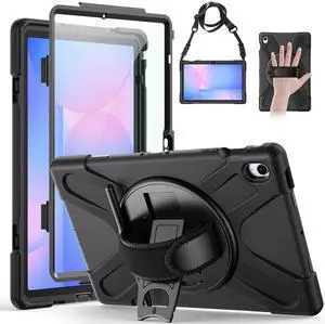 Gerutek Case for Samsung Galaxy Tab S10 FE+/ S10 FE Plus 2025 13.1 Inch, Full-Body Drop Protective Case with Screen Protector, Pen Holder, 360 Rotate Hand Strap & Stand,Shoulder Strap, Black