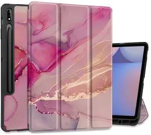 MEEgoodo Case for Samsung Galaxy Tab S10+ 2024/S9 Plus/S9 FE Plus 12.4 inch Cover 2023 with Pen Holder,Tablet Cases with Folding Stand+Soft TPU Back Shell + Smart Auto Wake/Sleep, Gold Splashes Marble