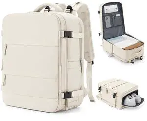 suwasp Travel Backpack for Women Airline Approved Carry On, Large Laptop Backpack for Men, Flight Approved Luggage Backpack (Beige-with Toiletry Bag)