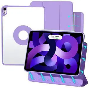 ZENLU 10.9/11 inch iPad Air Case with Removable Magnetic Folio Cover, Premium PU Leather, Multiple Angles Stand, Pencil Slot Charging Support, Full Protective Case for iPad Air 6 5 4 Gen (Purple)