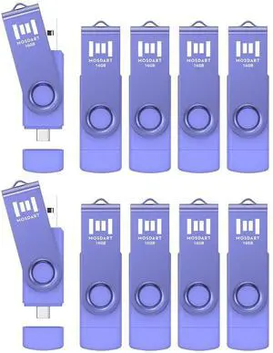 MOSDART 16GB FAT32 USB C Flash Drive - USB 2.0 Type-C OTG 2-in-1 Dual Thumb Drive Memory Stick, A and C interfaces for Android Phones, iPhone 15, 16,17, MacBook, iPad, Laptop, Purple (Pack of 10)