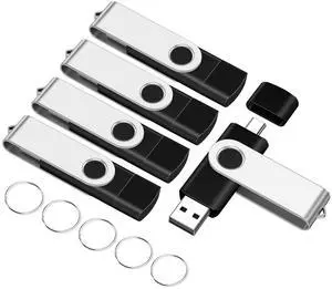 16GB USB2.0 & Type-C Flash Drives 5-Pack, EASTBULL 2-in-1 FAT32 USB C Drive Bulk USB + USB-C Thumb Drives Pack Memory Sticks Compatible with Smartphones, Computers, Tablets, Mac (Black, 16GB)
