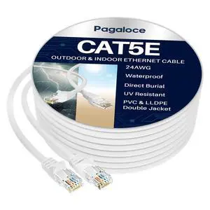 Cat5e Ethernet Cable 100FT, High Speed Patch Internet Cord with Standard RJ45 Connector, Long White Snagless Cat 5e Cable, Indoor & Outdoor, UTP Network LAN Wire for PC, Router, Modem, TV, PoE, PS5
