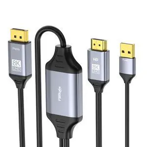 fairikabe 4K@120Hz HDMI to Displayport Cable with USB Powered for Xbox Series X, PS4,PS5, PS4 Pro, 8K HDMI 2.1 Source to Display Port 1.4 Adapter Cable 6.6ft, Unidirectional HDMI Male to DP Male