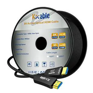 8K HDMI Fiber Optic Cable 200FT, HDMI 2.1 48Gbps Ultra High Speed Cord, 8K@60Hz, 4K@120Hz, 3D Dynamic HDR/eARC/HDCP 2.3, Compatible with Laptop/Monitor/Projector, PS5, Xbox, HDTV, Blu-ray & More