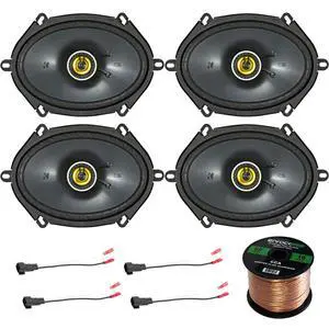 KICKER Car Speaker Set Combo of 4 CS684 6x8 Inch 450W 2-Way Car Coaxial Stereo Speakers + 4 Metra 72-5600 Speaker Connector for Ford, Lincoln, Mazda, Mercury, + Enrock 50ft 16g Speaker Wire