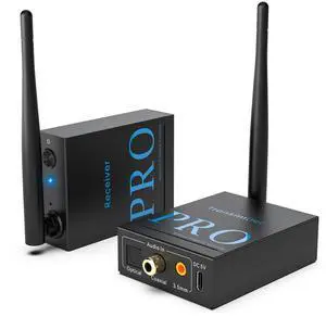 1Mii 2.4GHz Wireless Audio Transmitter and Receiver (1 TX+1 RX), HiFi Audio, 20ms Low Latency, 328ft Long Range Wireless Kit for Speaker/Stereo/Soundbar, Optical/Coaxial/3.5mm(RCA) Ports