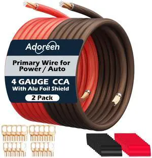 4 Gauge AWG Power/Ground Wire Cable 50 Ft Black+50 Ft Red, High Power Shielded CCA Soft Automotive Welding Battery Wiring Kit,for Car Audio Amp Speaker RV Trailer Marine Solar+ Lugs&Heat Shrink Tubes