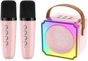 Integrated speaker and Bluetooth speaker with karaoke microphone and colorful dual microphones for audio playback