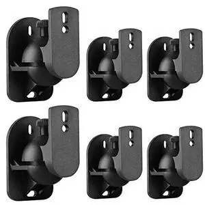 TNP Universal Satellite Speaker Wall Mount Bracket Ceiling Mount Clamp with Adjustable Swivel and Tilt Angle Rotation for Home Theater Surround Sound System Satellite Speakers - 6 Pack, Black