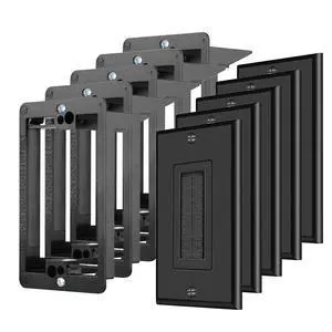 TNP Brush Wall Plate with Mounting Bracket Kit (5 Pack) Single Gang Cable Entry Access Brush Bristles Style Strap Opening Port Insert Socket Wiring Plug Jack Face Cover Outlet Mount Panel (Black)