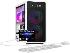 HP OMEN 35L AI Gaming Desktop PC (AMD Ryzen 7 8700F, NVIDIA GeForce RTX 5070 12GB GDDR7, 32GB DDR5, 256GB PCIe SSD + 2TB HDD, RGB Fans, 850W PSU, WiFi 6, Bluetooth 5.4, RJ-45, Win 11 Pro)