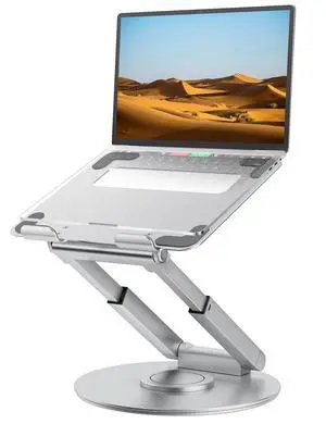 MENDELEEV STYLE Silver Laptop Stand for Desk with 360 Rotating Base Compatible with MacBook Pro/Air Notebook up to 16 Inches Computer Stand for Laptop Ergonimic Foldable Riser for Desk