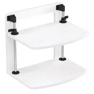SKYROSEXSDCT Adjustable Desk Side Laptop Holder with Headphone Stand - No Drill Clamp Organizer for Laptops, Tablets, Keyboards (White) - Sturdy Steel & Silicone Pad Protection
