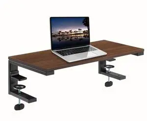 ThriveHive Ergonomic Clamp-On Laptop and Computer Monitor Riser Stand with Drawer, 21.6 x 9.8 inch - Dark Brown^^Laptop Stand for Desk, Monitor Riser, Desk Organizer, Office Desk Home Workspace