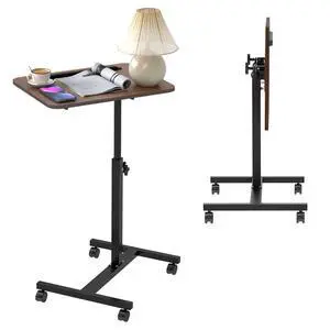 alentar Large-Size Portable Laptop Rolling Desk with Wheels, Adjustable Height and Tilt Top Stable Mobile Over-Bed Table for Home Use - Brown