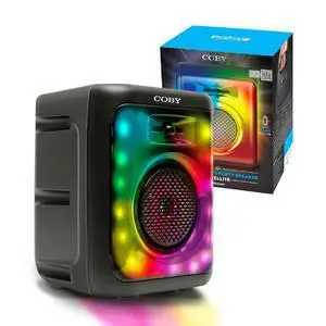 Coby Wireless Bluetooth Speaker, Portable Speaker with 11 LED Light Modes, Built-in Mic Input, and FM Radio for Outdoor Use, Rechargeable Battery, Micro USB, AUX Port, and TF Card Slot, 7-Hour Play