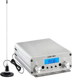 15W Long Range FM Broadcast Transmitter for Drive-in Movie, Church Parking Lot, Lights Fireworks Show,Fireworks Display,School, Supermarket Events with 3.5mm Mic Jack