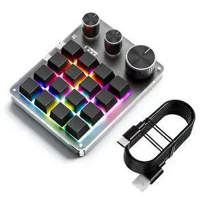 Programmable Macro Keypad, Portable 16 Key Keyboard Red Switch with 3 Modes, 3 Knobs for Office Game Music (Black)