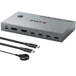 KCEVE KVM Switch 2 Monitors 2 Laptops USB C, KVM Switch Dual Monitor HDMI 4K@60Hz for 2 Laptops Share 4 USB 3.0 Devices with 80W PD, with 2 USB-C Cables and Wired Remote
