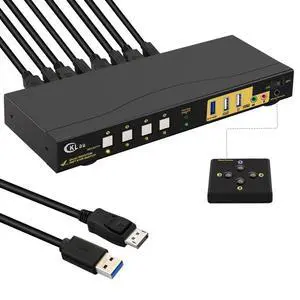 Displayport Kvm Switch EDID 1 Monitors 4 Computers 4K 144Hz Hotkey Switching PC Switch 1 Monitors dp 1.4 1440P 144Hz 165Hz 240hz kvm Switches 1 Laptop 1 Desktop 1 Monitor EDID