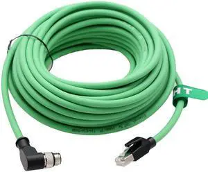 HangTon Ethernet Cable M12 4 Pin D Code Right Angle to RJ45 for Profinet EtherNet/IP EtherCAT Switch Encoder Sensor Camera CAT5e Network 20M