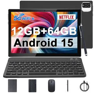 10 inch Android 15 Tablet, 2026 Tablet with Keyboard, 24GB+256GB+2TB Expand, 2 in 1 Tablets with Gemini AI, Octa-Core, 8000mAh, 5G WiFi, Widevine L1, GMS, Tablets PC with Case, Mouse, Stylus (Black)
