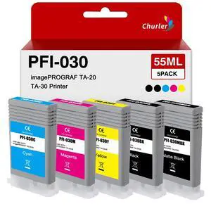 PFI-030 Ink Cartridge 55-ml Set Compatible PFI-030MBK PFI-030BK PFI-030C PFI-030M PFI-030Y Replacement for Canon imagePROGRAF TA-20 TA-30 Printer (5Pcs, Matte Black,Black Cyan Magenta Yellow)