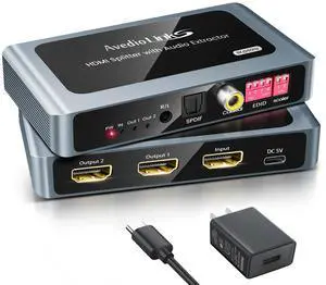 CORSAHD 8K@60Hz 4K@120Hz HDMI2.1 Splitter 1 in 4 Out with Audio Extractor,HDCP2.3,Supports SPDIF 5.1Ch,VRR,ALLM,HDCP Bypass,EDID,Duplicate,Downscale,HDR,Dolby Vision Atmos,Soundbar,Capture Card