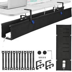 ELEVEXA 48" Under Desk Cable Management Tray- Clamp/Screw Mount Desk Cable Organizer Cable Tray Hiders for Office&Home