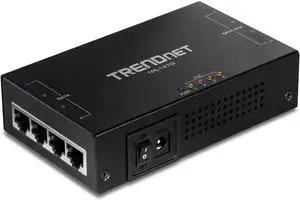 TRENDnet 65W 4-Port Gigabit PoE+ Injector, TPE-147GI, 4 x Gigabit Ports(Data in), 4 x gigabit PoE Ports(Data + PoE Out), Multi-Port PoE+ Injector up to 100m(328 ft.), Add PoE+ Power to Non-PoE Switch