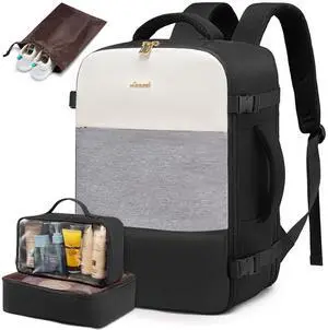 LOVEVOOK Travel Backpack for Women, Carry On Backpack Flight Approved with 3 Packing Cubes,TSA Personal Item Travel Bag Fits 15.6 Laptop,Weekender Hiking Business Luggage Daypack Beige Grey Black