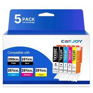 CATJOY Compatible Ink Cartridge Replacement for Canon PGI-280XXL CLI-281XXL PGI 280 XXL CLI 281 XXL to Compatible with TR8520 TS8322 TS9120 TS6220 TS9520 TS8220 TS9521C TS6120 TS8120 (5-Pack)
