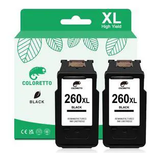 COLORETTO 260XL Black Ink Cartridges Replacement Compatible with TS6420a TR7020a TS6420 TR7020 TR7022a TS5320 Printer for Canon 260 Black Ink Cartridge, Ink Cartridges for Cannon 260 Ink (2 Pack)