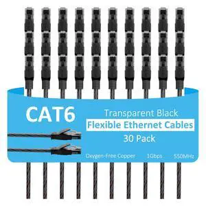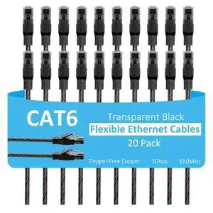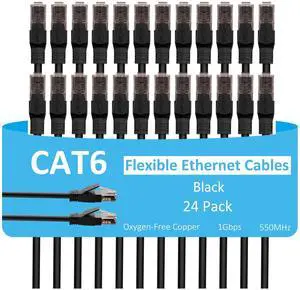 Cat6 Ethernet Cable 1 FT (24-Pack), Snagless Cat 6 Patch Cable, Upgraded Flexible PVC Jacket, Multi-Pack, OFC, 1Gbps, Cat6 Internet Network Cables, UTP, PC, Router, Servers, IT Data Center, Black