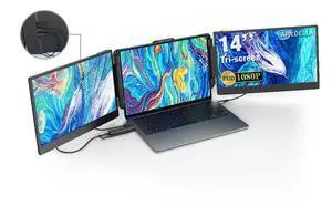 Karlak 14 inches Lap Expansion Screen 1080P FHD Portable Quad-Screen Monitor able & Rotatable Design Driver Quick Installation with 1 Cable for 3 Displays for Windows, MacOS for 13.6-17.3 inch Lap