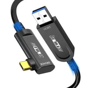 GeoHN.G USB A to USB C Fiber Optic Extension Cable 10M/33FT, Right Angle USB 3.2 10Gbps Long Distance Active Optical USB C Cable for VR/AR, Quest2, Webcam, Camera, Mini PC and More