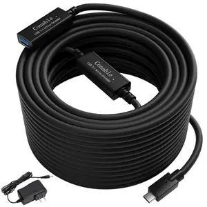 USB C to USB A Extension Data Cable 50FT, Long USB Type C-Male to USB 3.0 A-Female OTG Extender Adapter, with 2 Chipsets, with an AC Power Adapter (5V 2A), (Data Cable, Not Charging/Video Cable)