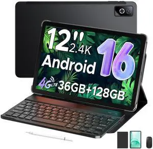 DOOGEE Tab G6 Pro 12 Inch 2.4K Tablet, 2026 New Android 16 Tablet with Keyboard, Helio G100, 36GB+128GB/2TB, 9000mAh Battery, 4G LTE/90Hz/Widevine L1/Gemini AI, Tablet with Pen, Mouse&Case, Black