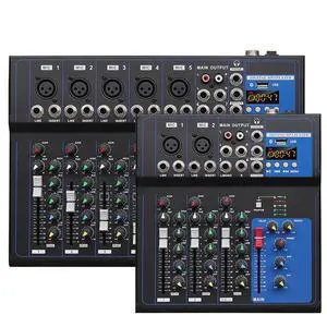Small 4-channel and 7-channel mixing console with loopback for live streaming in home stage, equipped with USB and Bluetooth DJ mixer for audio mixing.