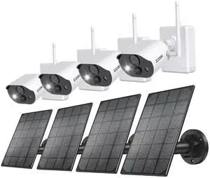 ZOSI C306 Pro 2K Solar Security Cameras Wireless Outdoor, 4PACK Outdoor Cameras for Home Security, Color Night Vision, PIR Motion Detection, Spotlight Alarm, 2-Way Talk, 2.4GHz WiFi, IP66 Waterproof
