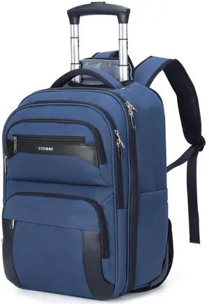 Sydioor 17.7inch Rolling Backpack With Wheels for Adults, Roller Carry On Luggage Wheeled Backpack, Rolling Laptop Backpack for Men Women to Travel Business, Blue